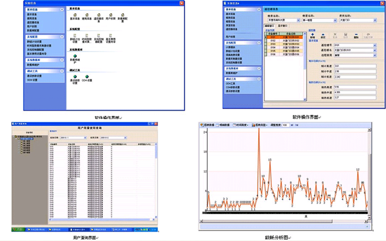 可根據(jù)用戶的設(shè)置,開關(guān)相應(yīng)設(shè)備,自動轉(zhuǎn)入節(jié)能運行模式,根據(jù)用戶的要求對整個采暖季的運行數(shù)據(jù)進(jìn)行采集分析,生成能耗分析圖。